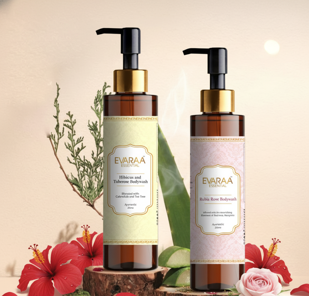 Give your daily bathing ritual infused with nature-Evaraa Essential Bodywash Combo. It’s a soothing blend of Ayurveda and botanical ingredients that gives the body a deep cleanse, hydrates, and uplifts the senses. The Bodywash Combo features luxurious Rubia Rose Bodywash & fragrant Hibiscus & Tuberose Bodywash. It gives daily nourishment and is glow-free from parabens, sulfates, and synthetic dyes.
