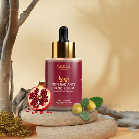 Unveil your skin’s natural glow with Evaraa Essential's Kanti - Skin Radiance Nano Serum. The best next-gen herbal skincare formula infused with the power of nanotechnology. This advanced nano serum for skin is designed to nourish deeply into the layers. Its radiance-boosting properties, combined with ancient botanical extracts, help reduce acne, dullness, pigmentation, and signs of aging. The result? Luminous, refreshed, and visibly clearer skin.